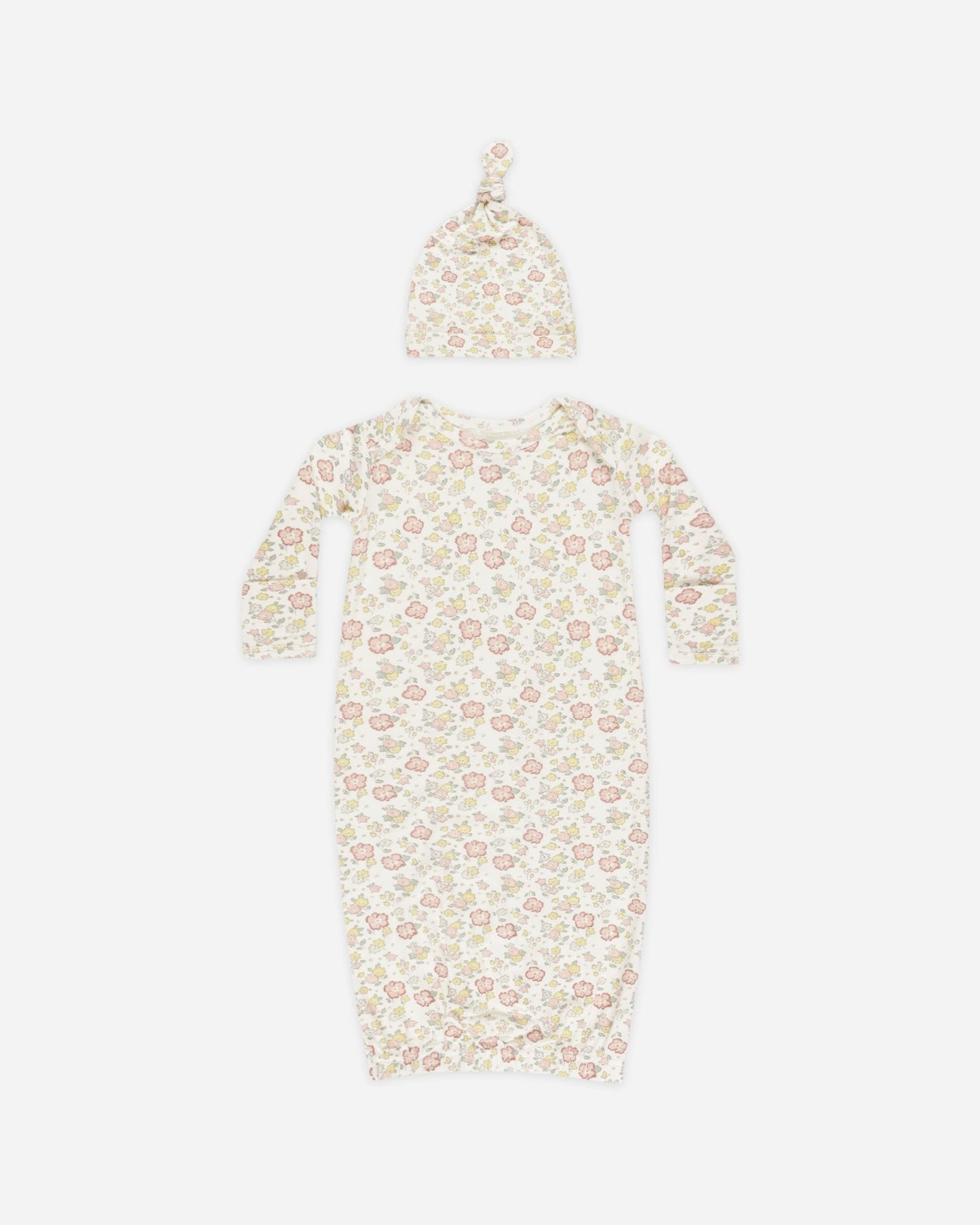 Quincy Mae Bamboo Baby Gown + Hat Set || Bloom