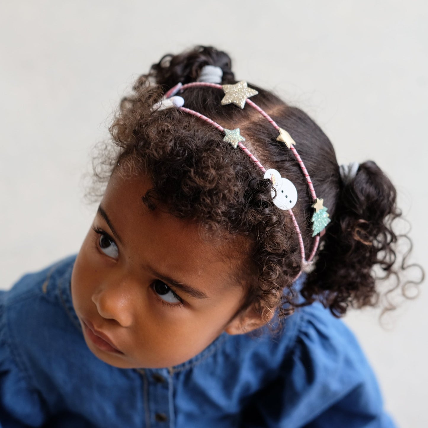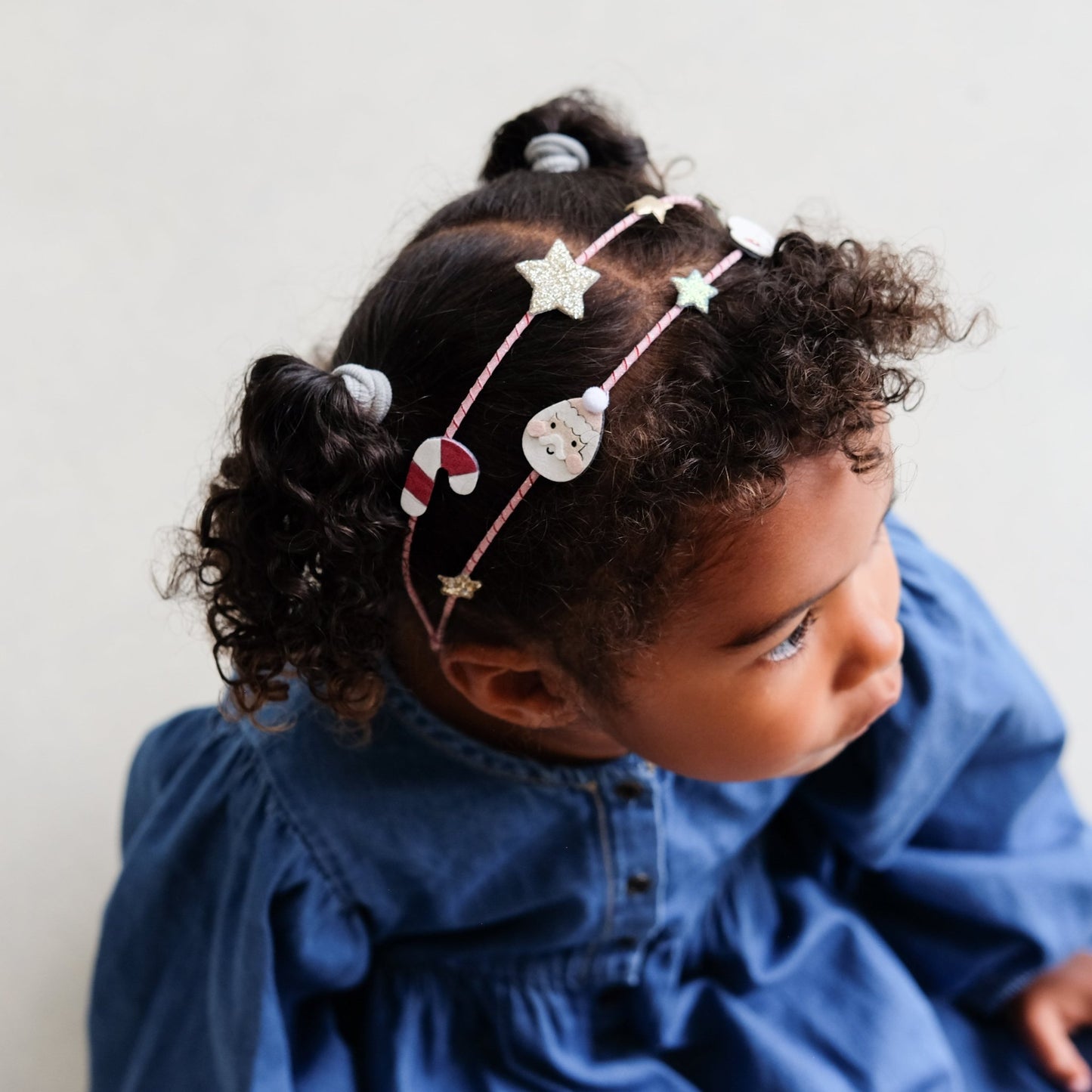 Embrace the magic of a childhood Christmas with this super fun double alice band decorated with all the best bits the festive season has to offer!