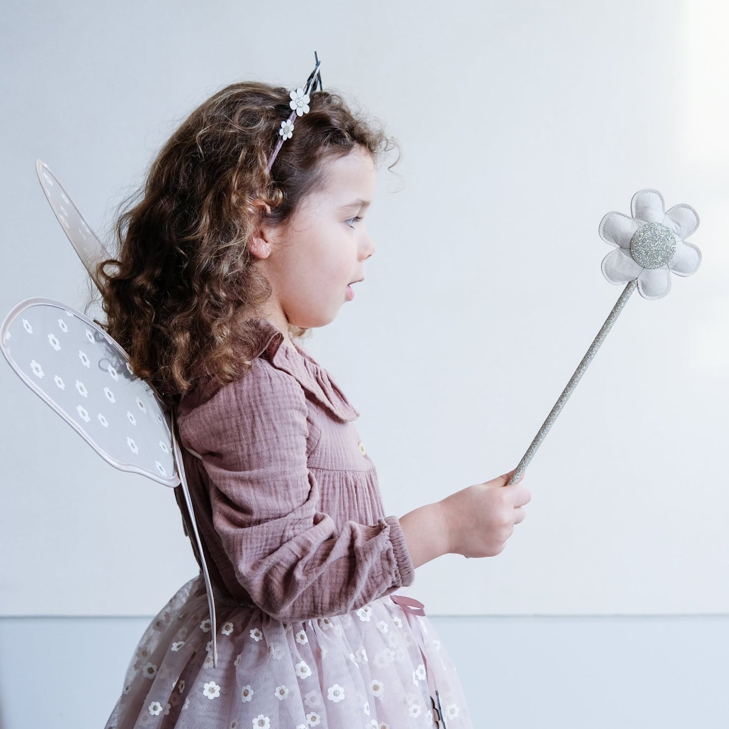 Daisy, daisy, we're half crazy...for this beautiful new daisy wand! A delightful gift for any little flower fairy! Pairs perfectly with our daisy cape, tutu, wings, or headdress!