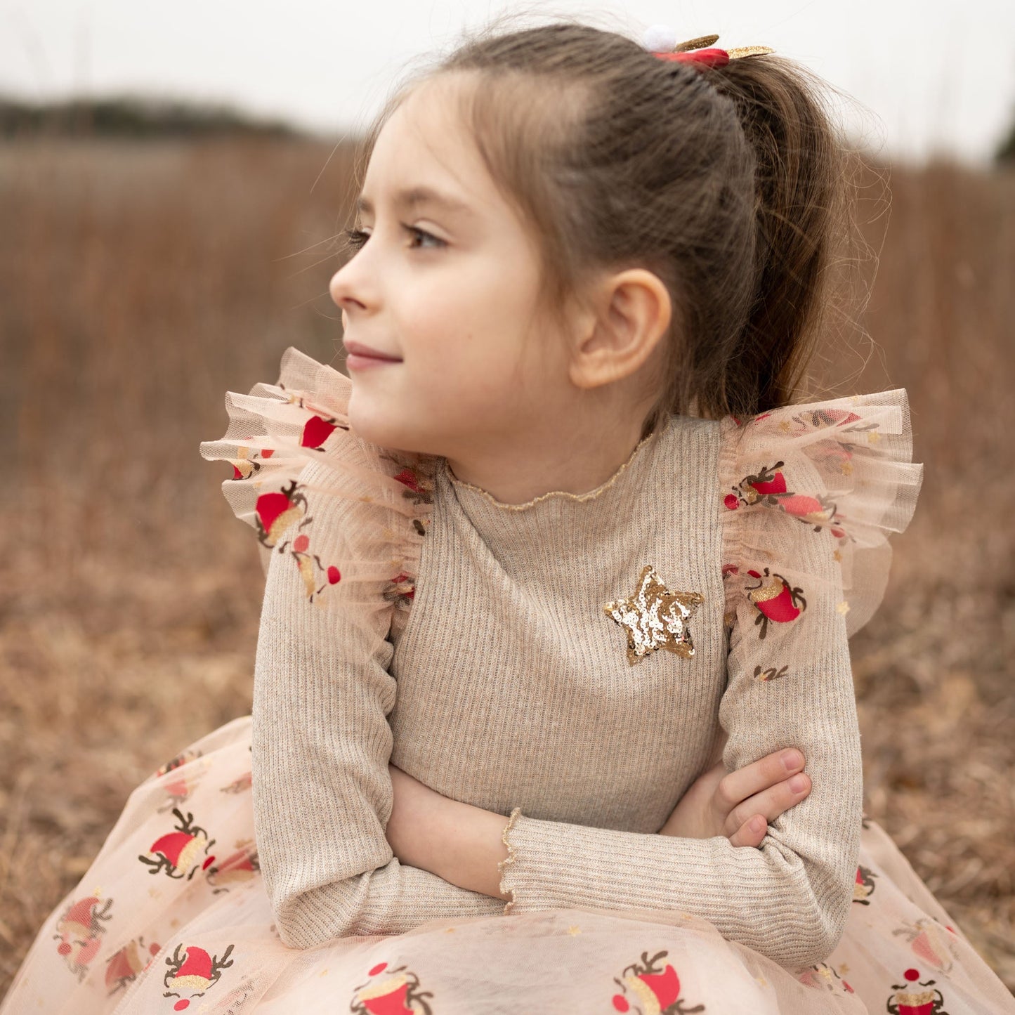 Petite Hailey Deer Frill Tutu Dress-Gold