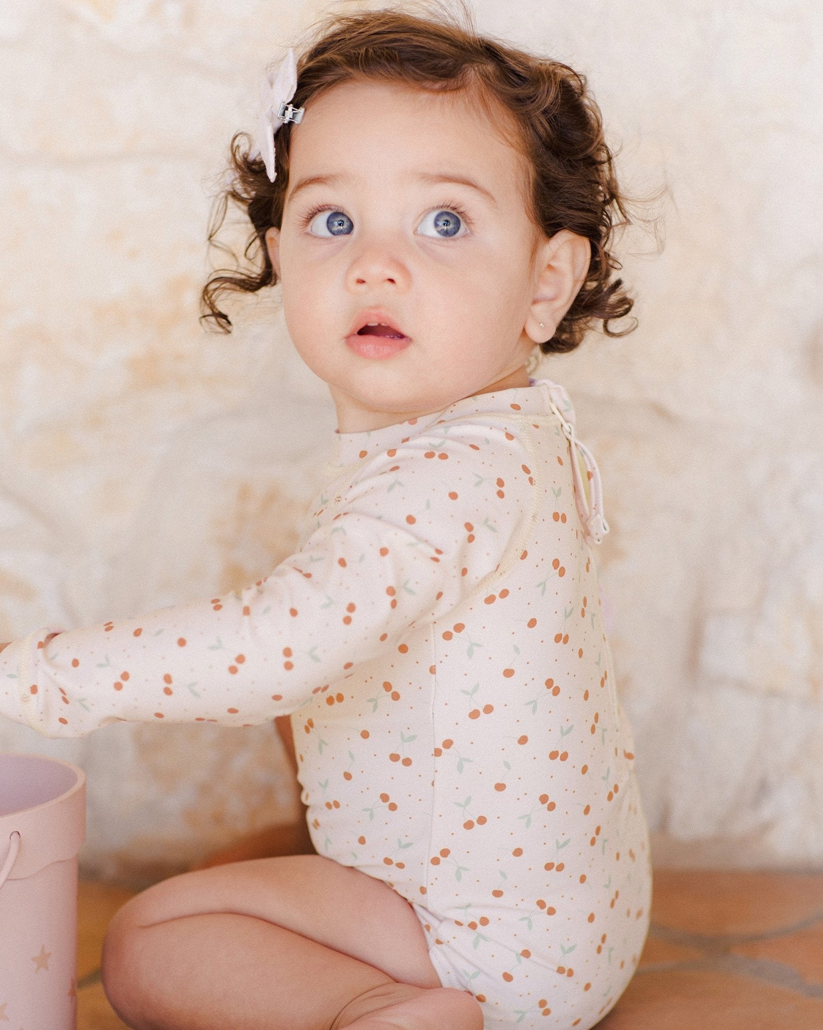 Featuring our 'cherries' print on our 'shell' hue. Put the cherry on top of your summer style with this sweet print.