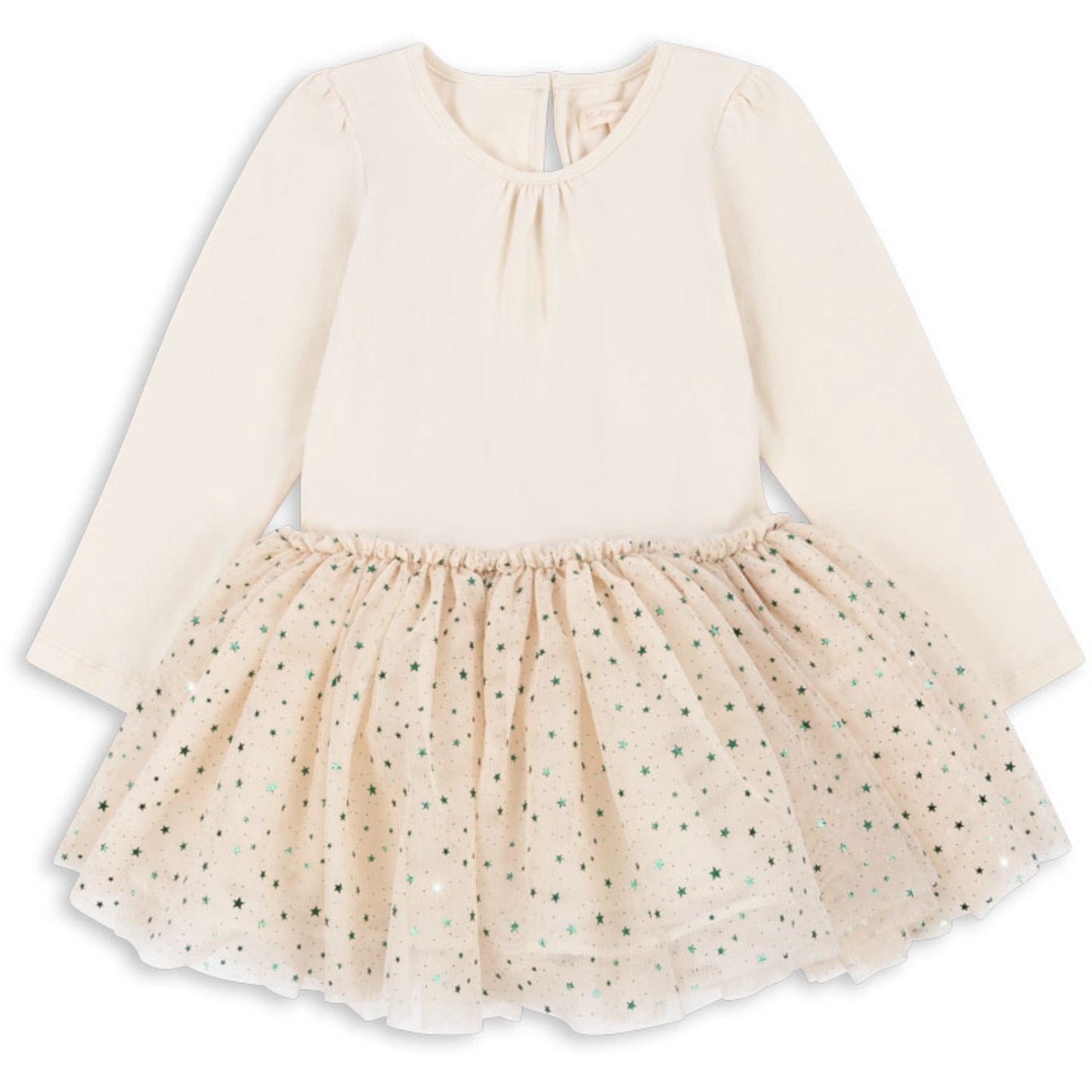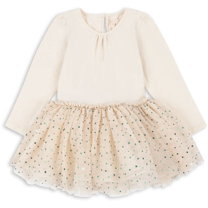 Discover the enchanting world of the Konges Sløjd Fairy Etoile Green Fairy Ballerina Dress, a perfect blend of magic and comfort for your little one. Crafted from OEKO-TEX® STANDARD 100 certified materials, this dress ensures that it meets high environmental and safety standards. The long sleeves and delightful puff design pair elegantly with the whimsical layered tulle skirt, creating a dreamy look for any aspiring ballerina.