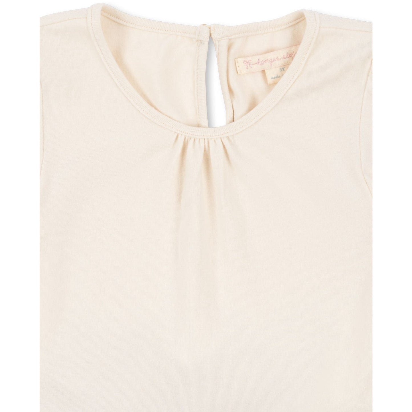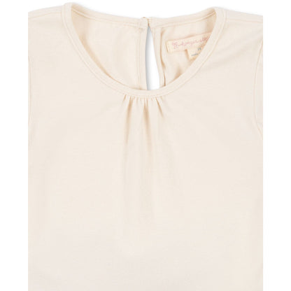 The dress varies in construction depending on size; sizes 1M - 18M feature a full jersey body with convenient press buttons at the leg opening and a gentle mesh waist, while sizes 2Y - 10Y boast a comfortable jersey upper and a flowing mesh skirt. This variation ensures a perfect fit and adaptability as your child grows.