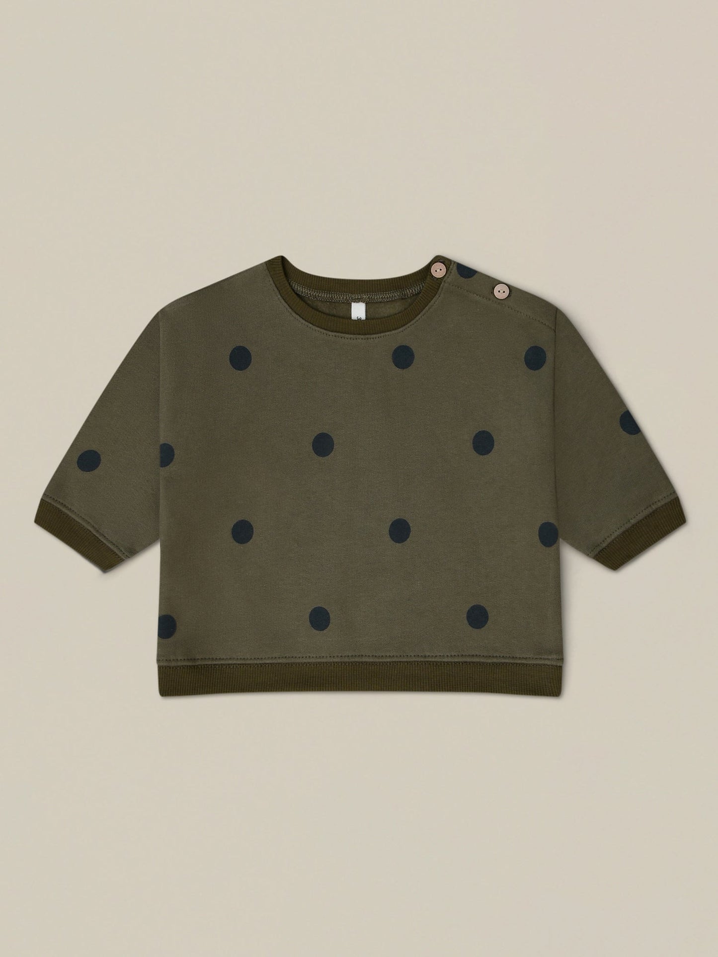 It's the comfiest everyday sweatshirt, made of super soft organic cotton and featuring the new Olive Dots print. Pair it with matching leggings, or mix it with any other bottoms for an effortless style.