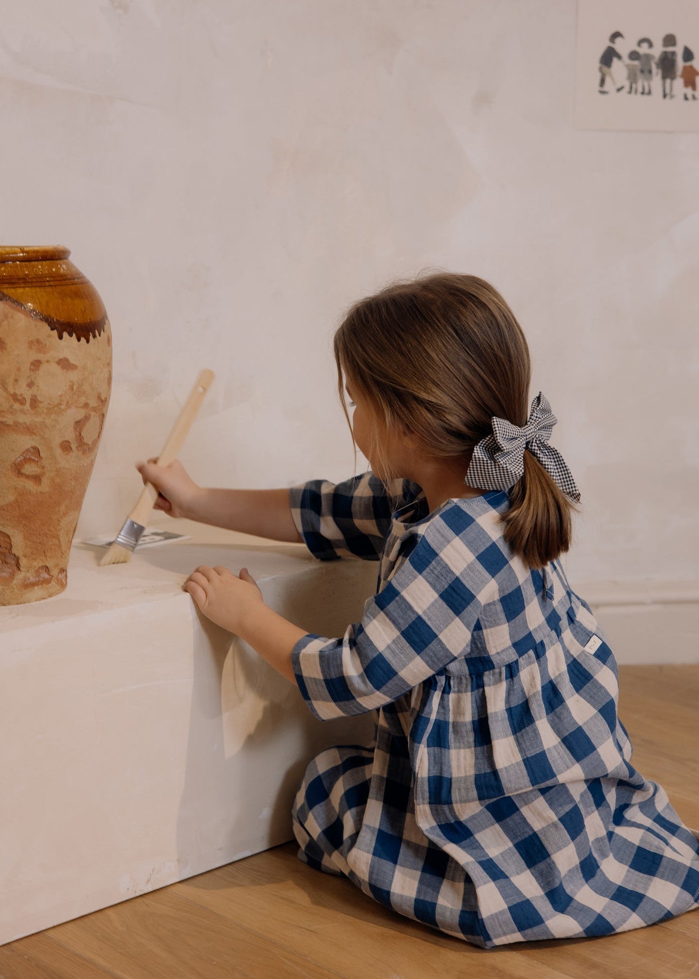 This dress is one of our favourites this season. It's made from soft organic muslin cotton, which is both soft and breathable. We love the flowy shape and chunky gingham pattern. It is perfect for everything from park playdates to special family events. Wear it on its own, or pair it with leggings for cooler days!