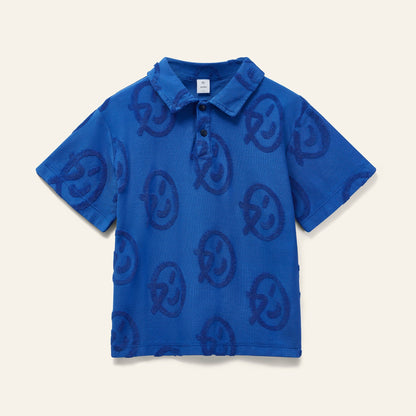 Crafted from soft, organic terry cotton, this relaxed-fit polo is both breathable and comfy, perfect for all-day wear. It features a unique inverted Wynken logo artwork all over, adding a fun twist to a classic design. With its cozy texture and easygoing fit, this polo shirt is ideal for everyday adventures, from playground outings to family gatherings. Perfect match for PULPO TRACK PANT and PULPO SHORT.