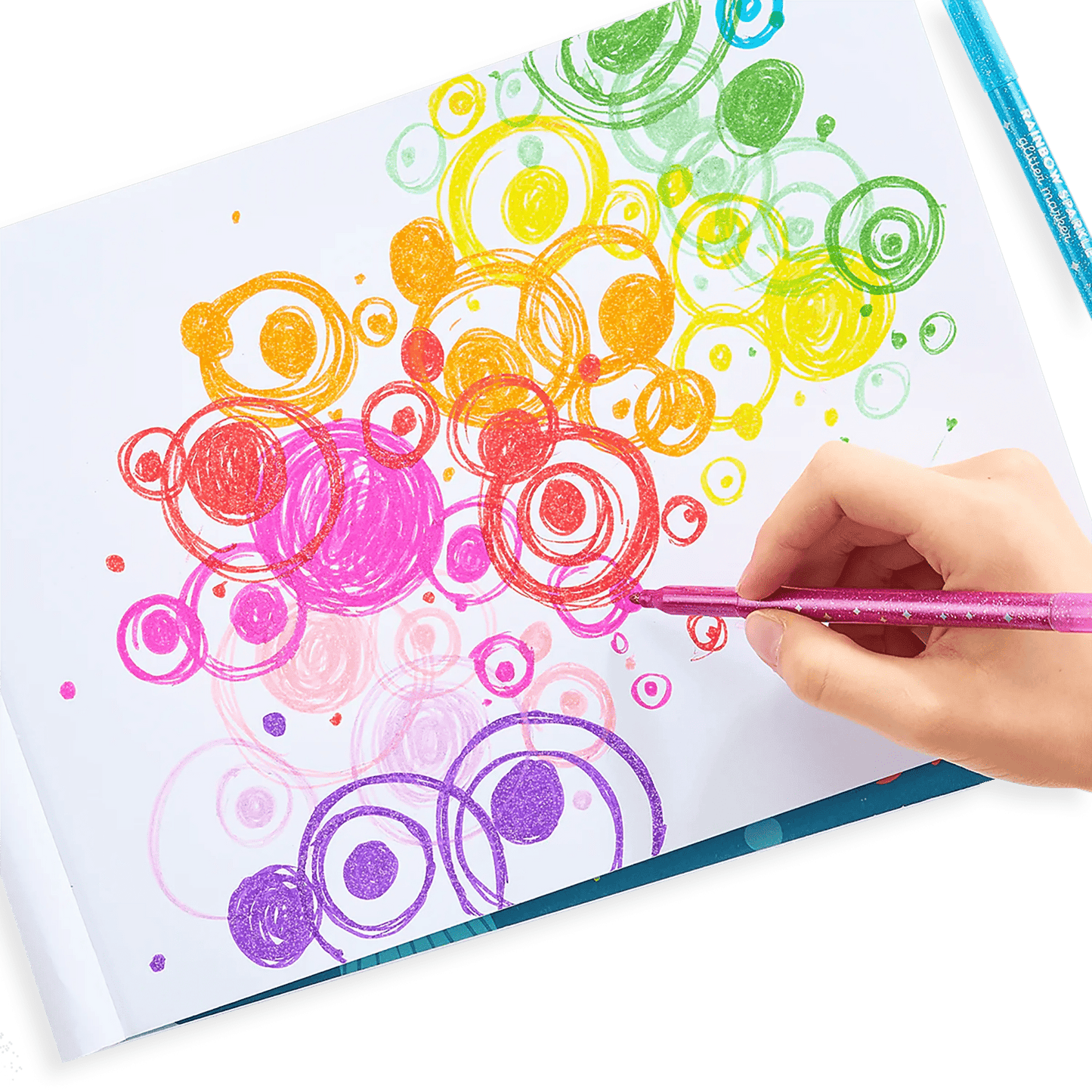 When you really want your creativity to sparkle, try drawing and coloring with these glitter markers. This set of rainbow sparkle glitter markers includes 10 classic colors, like red and orange, along with 5 pastel shades, like pink and light blue. And while each of these 15 markers may have their own distinct radiant color, they all add a glistening shimmer with every mark they make! Using glitter markers for coloring will not only amp up your drawing game, it’ll remind you that sometimes, life deserves a little flare!