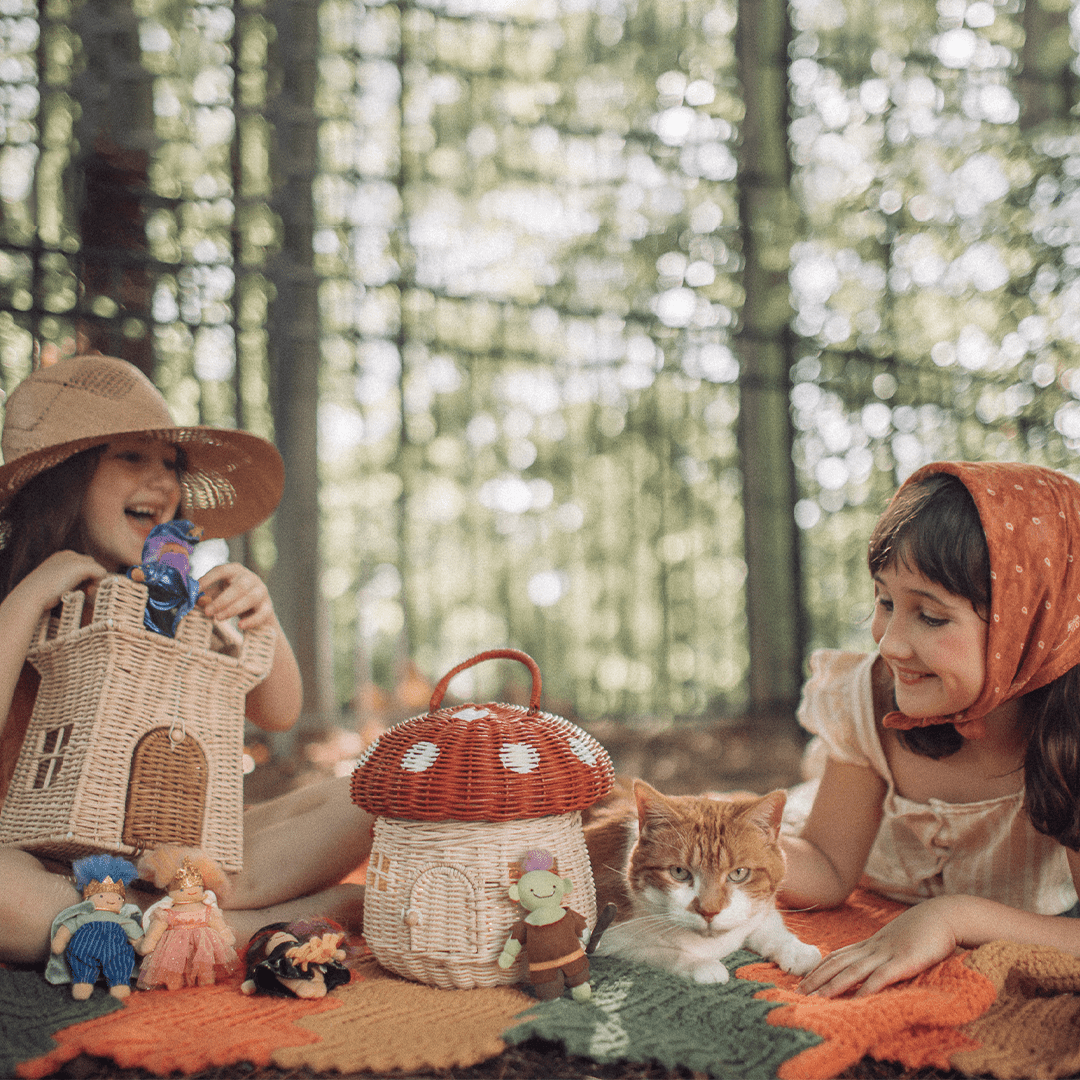 With a generous size, adjustable handle, and a little door (which opens and shuts), kiddos can open the Mushroom top and carry teeny treasures with them wherever they go.