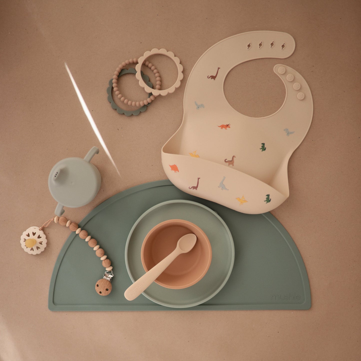 Keep your little one feeling comfy and clean with our fun-loving collection of silicone baby bibs. Designed in Sweden, Mushie baby bibs feature classic patterns, capturing a look that is both timeless and elegant.