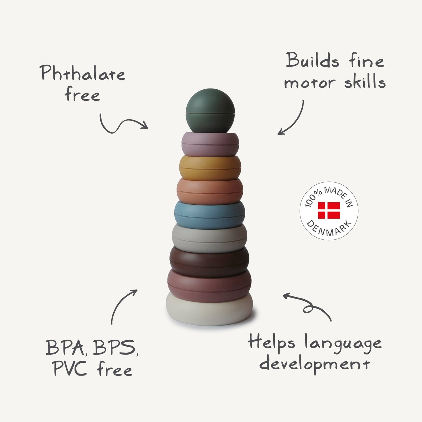 Whimsical design and sophisticated colors make these stacking rings a stylish addition to your home. This toy is part of our Danish Hygge collection